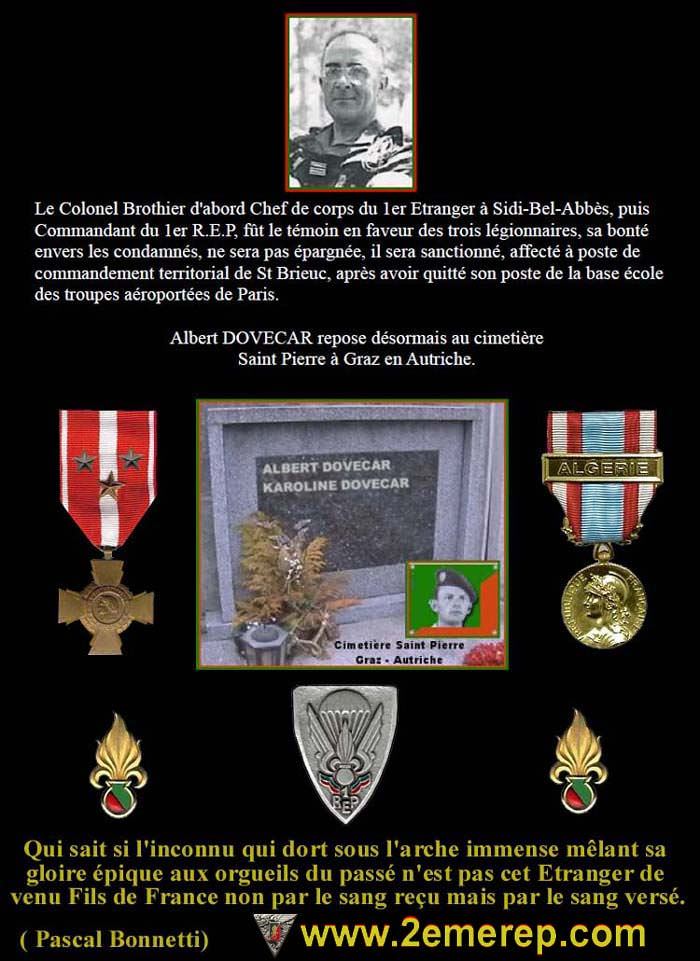 Alors le sergent DOVECAR récupère sa tenue camouflée pour livrer son dernier combat. En laçant ses rangers, à quoi pense-t-il ? A tous ces matins qui précédaient les départ en opération et où la journée commençait par ces mêmes gestes. Où alors pense-t-il à l’Adjudant STUWE, au Colonel JEANPIERRE, à tous ses camarades de régiment tombés en Algérie et qu’il va désormais rejoindre. Peut-être est-il en train de prier et de demander à Dieu de lui donner la force et le courage pour affronter cette ultime épreuve, comme il le faisait avant chaque combat. Il boucle son ceinturon et ajuste ses décorations sous le regard des officiels présents dans la cellule.